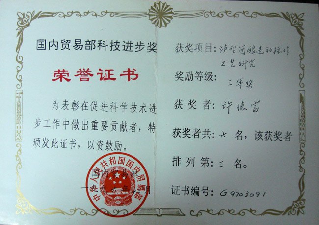 國(guó)內(nèi)貿(mào)易部科技進(jìn)步獎(jiǎng)